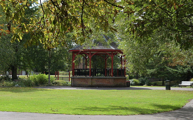 If it would have been a Sunday, then nearby crowds would have thronged around this stand to hear local brass bands showing off their love of music. We are in the main park of King’s Lynn called the ‘The Walks’ and just soaking up the views as we finish our picnic but as you can see –we cannot hear the music. It can be noted that our Autumn is starting to appear as witnessed by the changing leaves.