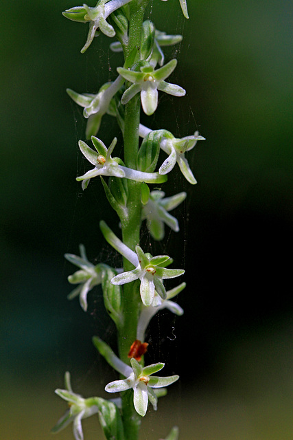 I posted one of two similar Piperias yesterday. Here is the other. The difference between the spurs is immediately obvious. This one, the Flat-spurred Piperia, has a spur (nectary) that is straight and horizontal. Though its colors are similar to those of the Long-spurred Piperia, the two flowers are very different on close examination. There are actually five Piperia species in Washington and the differences between them can be seen at the link below.