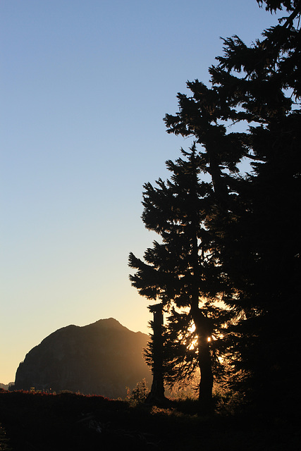 Taken on the trail to the top of Winchester Mountain from the area where we stopped to photograph the sunrise. I believe that the peak silhouetted by the rising sun is Big Bosom Butte, though I take no responsibility for the name. The main attraction was Mount Baker which we photographed endlessly in the light of the rising sun.