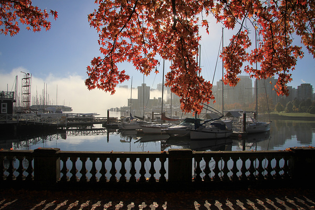This was taken a year ago on a an overnight excursion to Vancouver. We spent most of one day in Stanley Park and this was taken in the morning looking across the marina to downtown Vancouver. I thought it an appropriate shot for this time of the year with the beautiful autumn color, though I'm not sure I like the shot. It seems just a bit too busy to me.