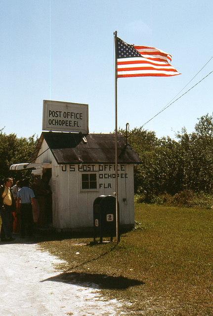 Nahe Ochopee und etwa 3 Meilen (5 Kilometer) von dem Punkt entfernt, an dem sich die Wege der Route 41 und State Road 29 kreuzen, taucht eine fast unscheinbare kleine Holzhütte in Größe eines Toi-Toi-Häuschens, aber mit gehisster US-Flagge am Wegesrand auf.