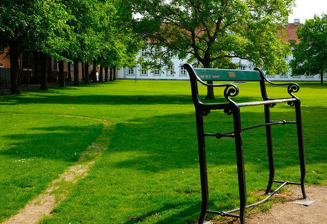 A purple bench and some Allium