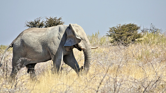 der Scheinangriff ist vorbei, er wedelt noch etwas aufgeregt mit den Ohren und zieht weiter. (Vielleicht um die nächsten Touristen zu erschrecken ;) Beginn der Serie: