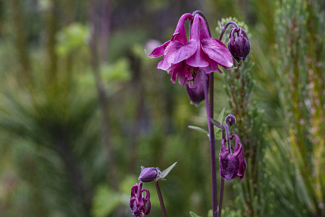 Eine Akelei im Garten. ich finde diese Blume ja sehr schön und sie wächst in den schönsten Schattierungen, von hellpink über Fuchsia, wie hier auf dem Bild, bis zu dunkelviolett. Leider hat sie den Nachteil, dass sie sich unkrautartig überall ausbreitet. Und so nehme ich jedes Jahr den Kampf auf, sie in ihre Schranken zu verweisen.