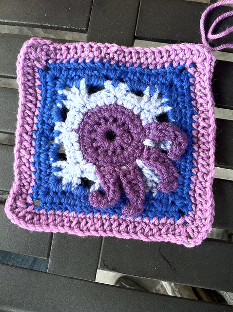 Octopus-motif square, for a collaborative afghan with an "Under the Sea" theme.