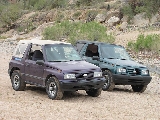 My brother's and my Geo Trackers exploring trails at Sycamore Creek in Arizona.