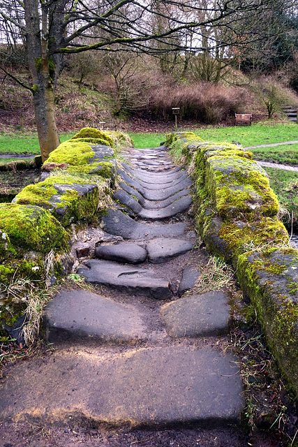 The deeply-grooved narrow footpath across the ancient Packhorse Bridge in Wycoller, Lancashire, in the North-West of England. This bridge is believed to be approximately 800 years old.....see next photo (in photostream) for full details. Photographed with a Sony RX100 compact camera and processed with Nikon Capture NX2.