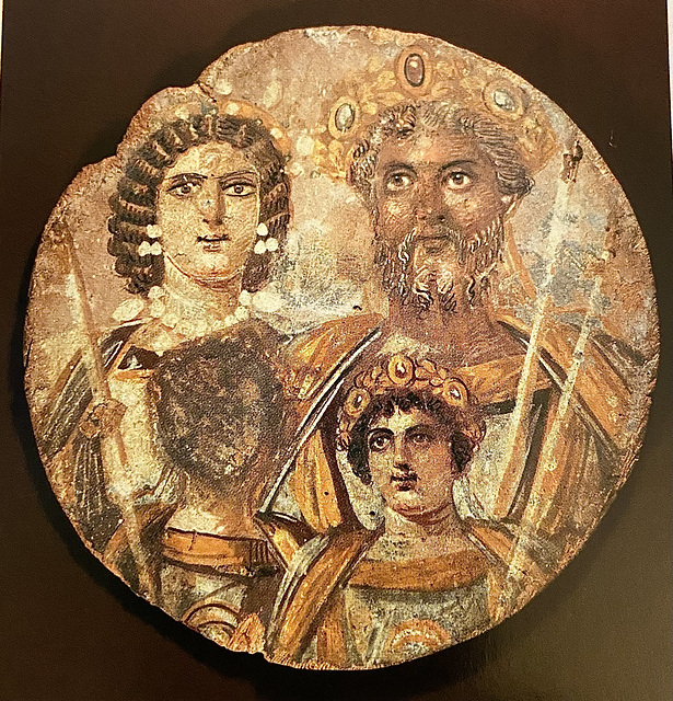A Rare image of Emperor Septimius Severus -- painted on wood. shown here with his wife Julia Domn and their children Caracella and Get (Geta's face had been erased). Both Septimius and Caracalla commissioned extensive building works for Byzantine, including the erection of the Milion, from which all distances in the Roman Empire were measured.
