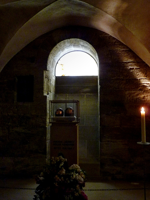 Not buried in the tomb, seen before, but kept under a glas-reliquary are the skulls of St. Heinrich and