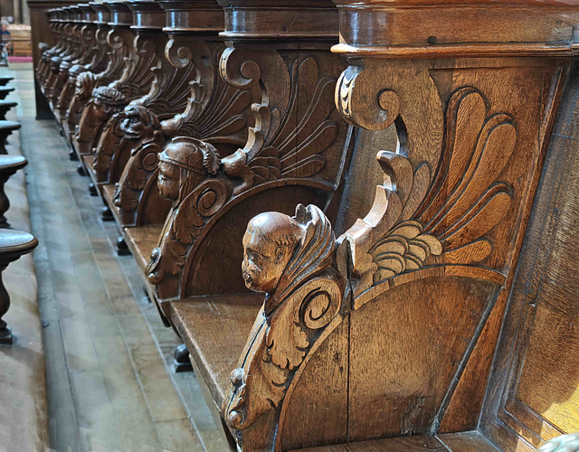 Saint-Étienne is the former monastery church of the Benedictine "Abbaye aux hommes". Construction of the church began in 1065/66 at the eastern end. It was consecrated in 1077 under the first abbot, Lanfranc of Bec of Pavia, who was appointed Bishop of Canterbury in 1070. The facade towers were completed in the last decade of the 11th century. From 1120/25, the former wooden ceiling in the nave was replaced by a six-part cross-ribbed vault. Around 1200, the conversion of the original stepped choir into a Gothic ambulatory began. Also in the 13th century, the Gothic pointed spires were added to the Romanesque west towers.