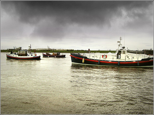 Ex-RNLI lifeboats making their way across Cardiff Bay.