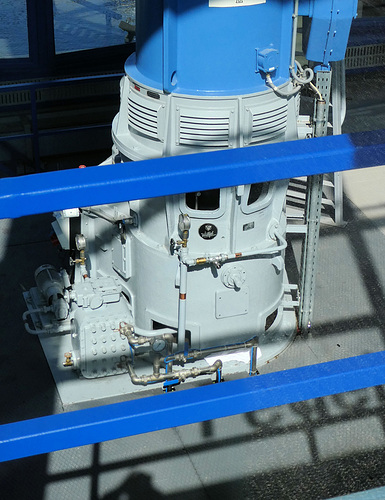 Am Sperrwerk der Alster (Schaartorschleuse) steht dieses Maschinenhaus mit drei vertikalen Schöpfwerkspumpen (Hersteller KSB). Bei starken Hochwasser wird das Wehr geschlossen und das ankommende Wasser der Alster wird dann über das Wehr in die Elbe gefördert.
