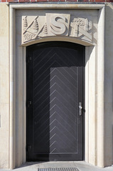 In der Warteschlange zur ersten Covid-Impfung entdeckte ich diese Eingangstür mit einem Steinrelief.
