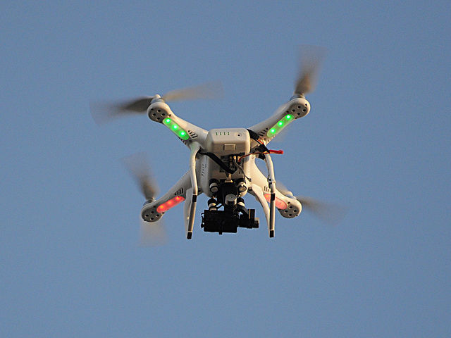 A quadcopter UAV (drone) monitoring the spectators of the aerobatic display. (DSC_8159)