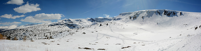 Bulgaria, The Circus of "Rila Lakes", Wet Meadow in Summer is under the Snow in Winter