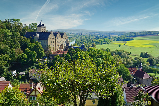In der Nähe von Schweinfurt befindet sich das Schloss Mainberg in romantischer Lage über dem Main, dessen Geschichte über tausend Jahre zurückreicht. Der markante Turm wurde zwischen 900 und 1000 n. Chr. erbaut. In den letzten Jahrzehnten hatte das Schloss immer wieder wechselnde Besitzer. Zurzeit wird das Schloss im Internet für rund 3,2 Mio. Euro zum Verkauf angeboten. Aber Achtung: Die Gebäude sind stark renovierungsbedürftig!