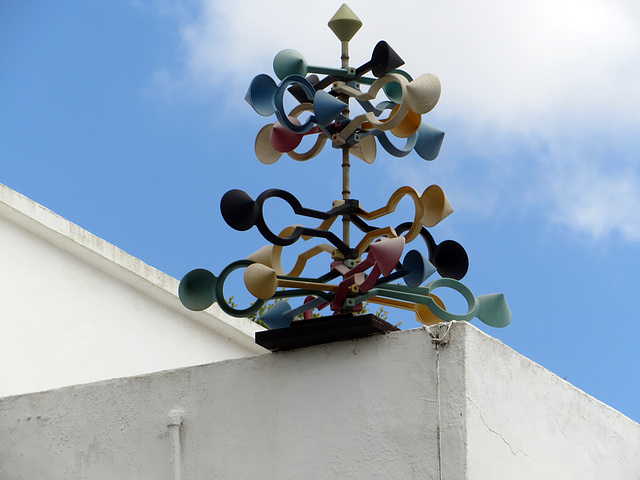 es steht in Teguise und ist auf dem Dach der Bodega Sta. Barbara