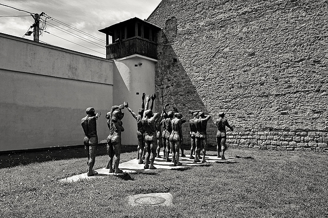 Es handelt sich um achtzehn Menschenkörper, die auf eine Wand zugehen, die ihnen den Horizont versperrt, so wie der Kommunismus das Leben von Millionen von Menschen einschränkte. 1997 wurde die Arbeit zunächst in Holz gezeigt und ein Jahr später in Bronze gegossen. Heute steht sie in einem der Innenhöfe des ehemaligen Gefängnisses.