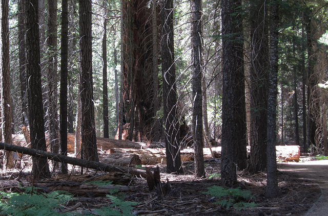 Unlike in Sequoia National Park, the large trees in this grove are just scattered among smaller trees. The trees are so thick that when I first was walking in the grove I wondered where the big trees were until I realized that they were almost right in front of me.
