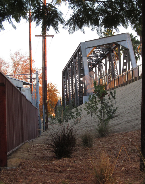 The bridge is on an abandoned section of railroad that was Union Pacific but has now been converted into a bike path. There are actually three bridges in this section, two original and one a replacement due to seismic concerns.