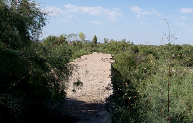 Abandoned (due to washout) highway bridge over the Gila River at Roll, AZ. It looked too shaky to consider going past this point.