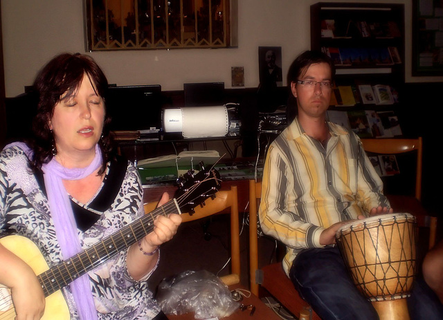 Kelkaj partoprenantoj de la vespera mantrokantado