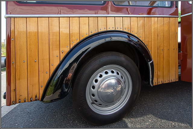Die Karrosserie des IFA F8 Kombi war aus Holz aufgebaut und mit Kunstleder überzogen. Besonders auffällig waren am Kombi die hinteren Kotflügel, welche die Holzverkleidung ganz offen zeigten. Sein Hinterachse wurde als Starrachse mit Längslenkern und hochgelegter Blattfeder, eine sogenannte Schwebeachse, ausgeführt.