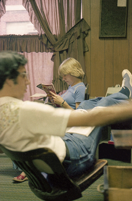 Back while I was still a senior in high school, I took a non-credited college course on photography. It was held in the nearby town of Harrisburg, Illinois and taught by a local photographer there named Roy Small. This is a picture of some of my fellow classmates before class started.