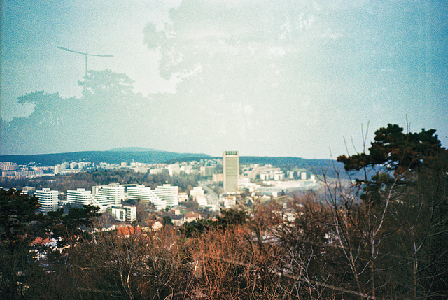 What makes this spot special isn’t just the cityscape, but how it’s framed by nature. The foreground is all tangled branches and dark pines, a reminder that you’re standing on the edge of a leafy hillside, not far from the Little Carpathians. On a clear day, you can see the hills rolling away in the distance, and sometimes even catch a glimpse of Austria.
