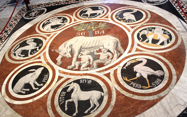 Bodenbelag: einmalige Marmorplatten mit kunstvollen Einlegearbeiten aus farbigem Marmor und schwarz gefüllten Gravuren