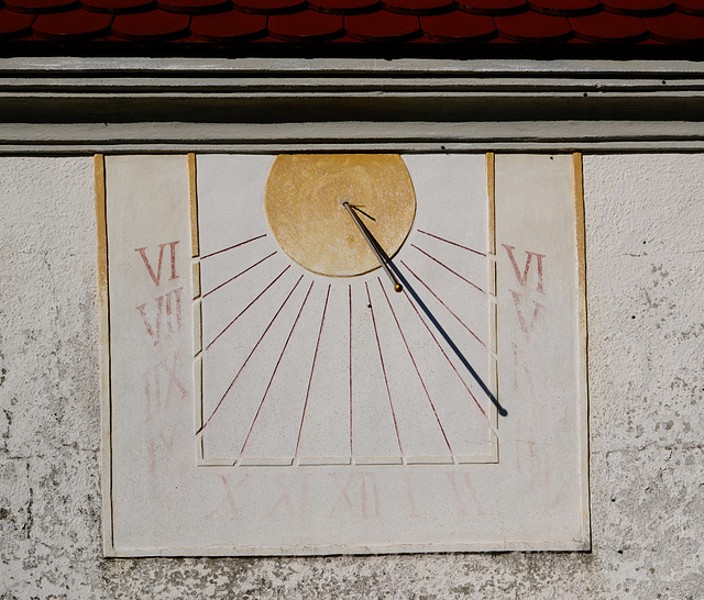 Welche Uhrzeit zeigt sie an, die sonnige Uhr?