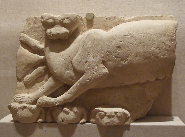The Goddess Mafdet (?), 3rd century B.C.E.. Limestone, 11 x 16 1/8 x 3 3/4 in. (28 x 41 x 9.5 cm). Brooklyn Museum, Gift of the Egyptian Antiquities Organization, 80.7.7.