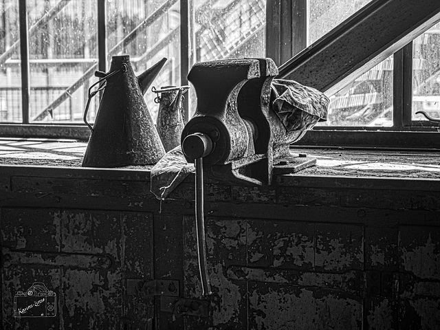 Museum Zeche Zollern, WErkbank auf dem Fördergerüst