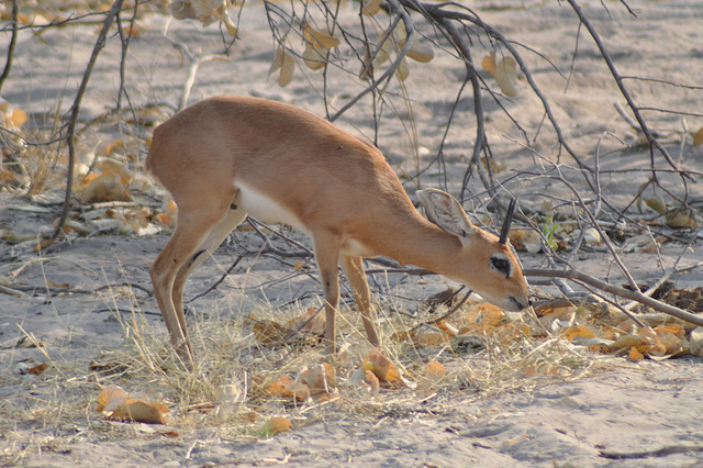 Sunio, la plej malgranda el la antilopoj. Nur 35 cm ĝis la ŝultro. Okavango-Delto