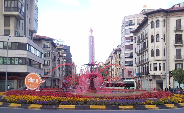 Fué una campaña del Ayuntamiento para concienciar sobre el problema del clima, la sostenibilidad, los humos, etc.... y por lo que se ve, a alguien se le ocurrió teñir el agua de esta fuente con vete a saber qué pócima.