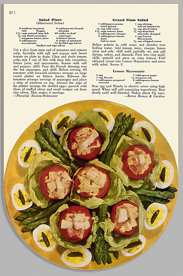 Cake, pie, and baked meringue are optional. From the 1940s to the 60s.