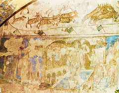 The painting of the Six Kings, an early Islamic fresco from Qast Amra, an Umayyad castle complex dating to the early eighth century AD. Four of the six kings can still be identified, including an unknown Byzantine Emperor (far left, in the blue patterned robe) whose face has been lost