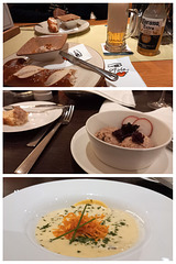 vorweg aßen wir im Brauhaus eine Brezel mit zwei verschiedenen Aufstrichen, anschließend haben wir einen Tisch im French Kiss für 20.30 Uhr bekommen, dort gab es als Vorspeise